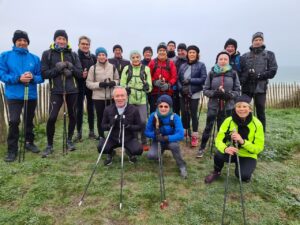 Les groupes de Marche Nordique en pause pour la photo sur les circuits de Cap Coz, Kerambigorn, Kerbader, Kermor et Sainte Marine.